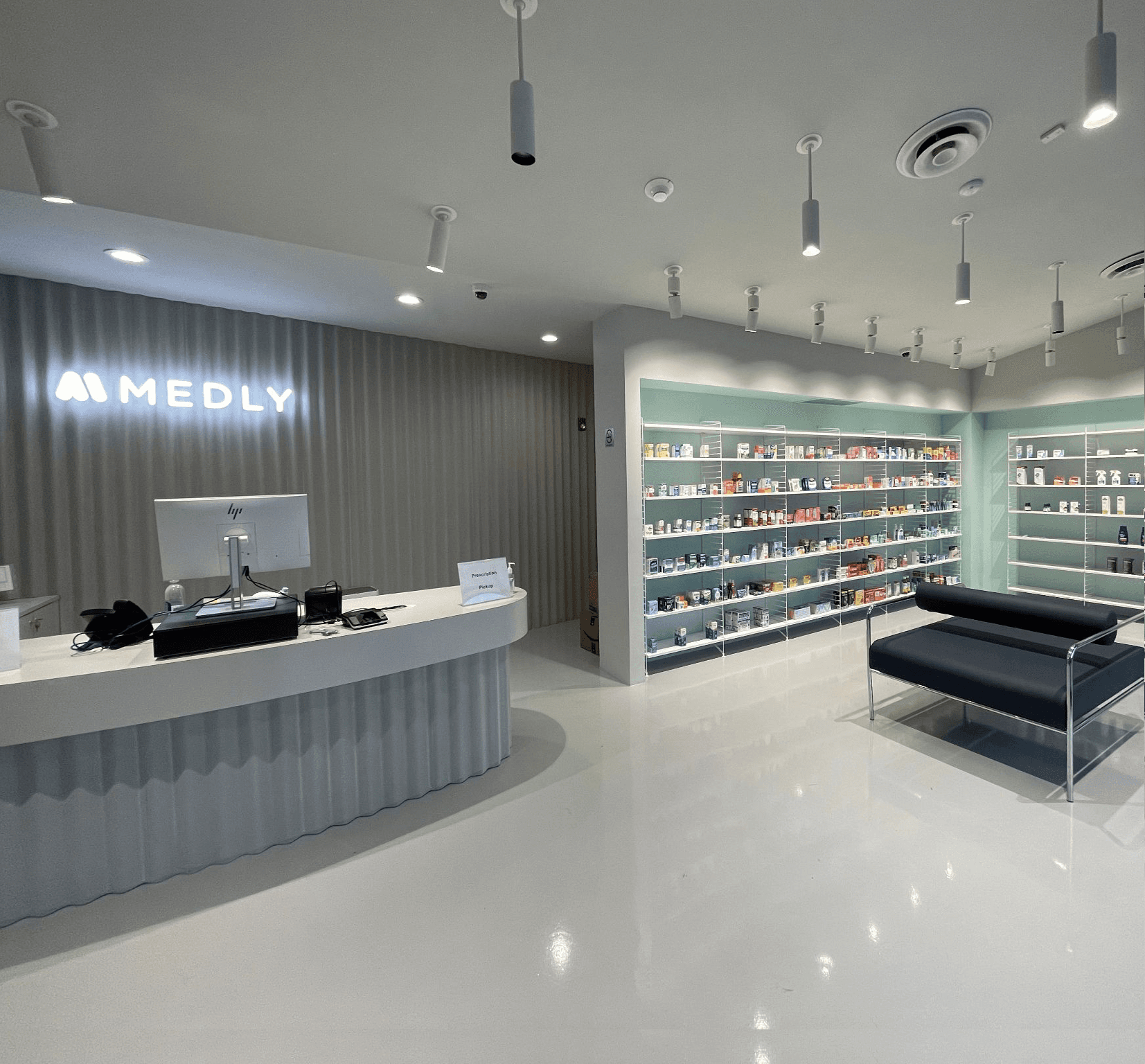 What does retail look like for a health-tech company? Pharmacies are legally required to hold inventory on-premise, so Medly needed a solution that met compliance requirements, but needed to depart from the traditional pharmacy connotation. E-commerce and “anywhere retail” means customers are visiting stores for less utilitarian and more experiential and social needs.
