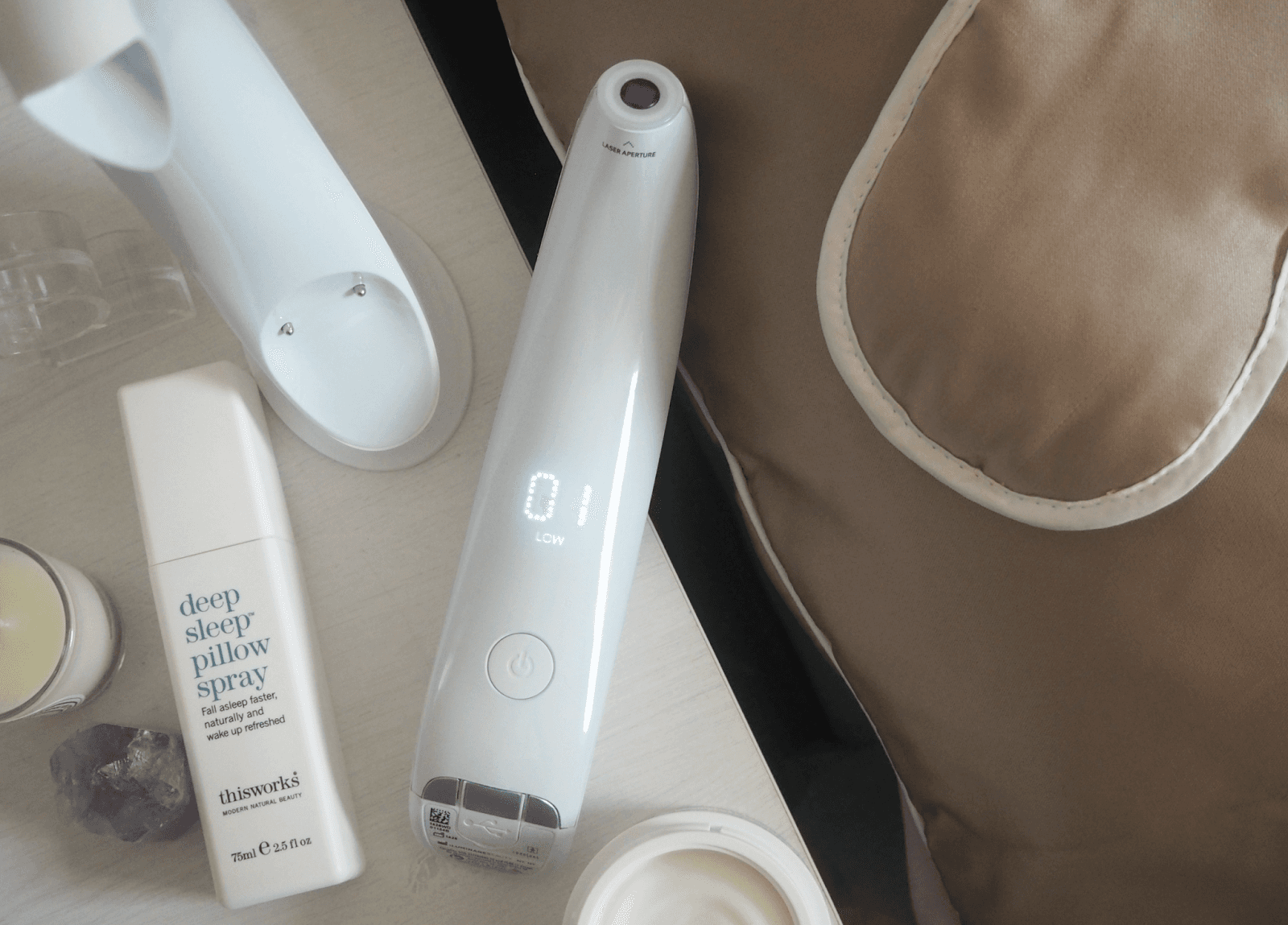 In order to feel confident in the laser’s effectiveness, people didn’t want a device so technical that it was intimidating. Balancing credibility and ease-of-use in the laser’s design proved critical to ensuring its adoption. People abandon routines that don't stay top-of-mind, so we designed an elegant form that users would deem countertop-worthy instead of being shoved in the bathroom “drawer of death.” The device's digital interface has a clever dead-face screen, which downsizes electronics for better ergonomics, and also adds an elegant mechanism for clear feedback during use. The laser has the ability to connect to a progress portal to see data and track their skin’s improvement, and engage with a community of users.