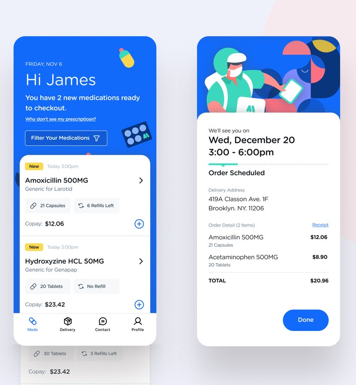 As one of the first pharmacy's with an app, Medly was determined to quickly scale its book of business to allow mobile refills, delivery scheduling, counseling, and overall treatment management while also developing a robust backend system to interface with health systems and insurance providers.