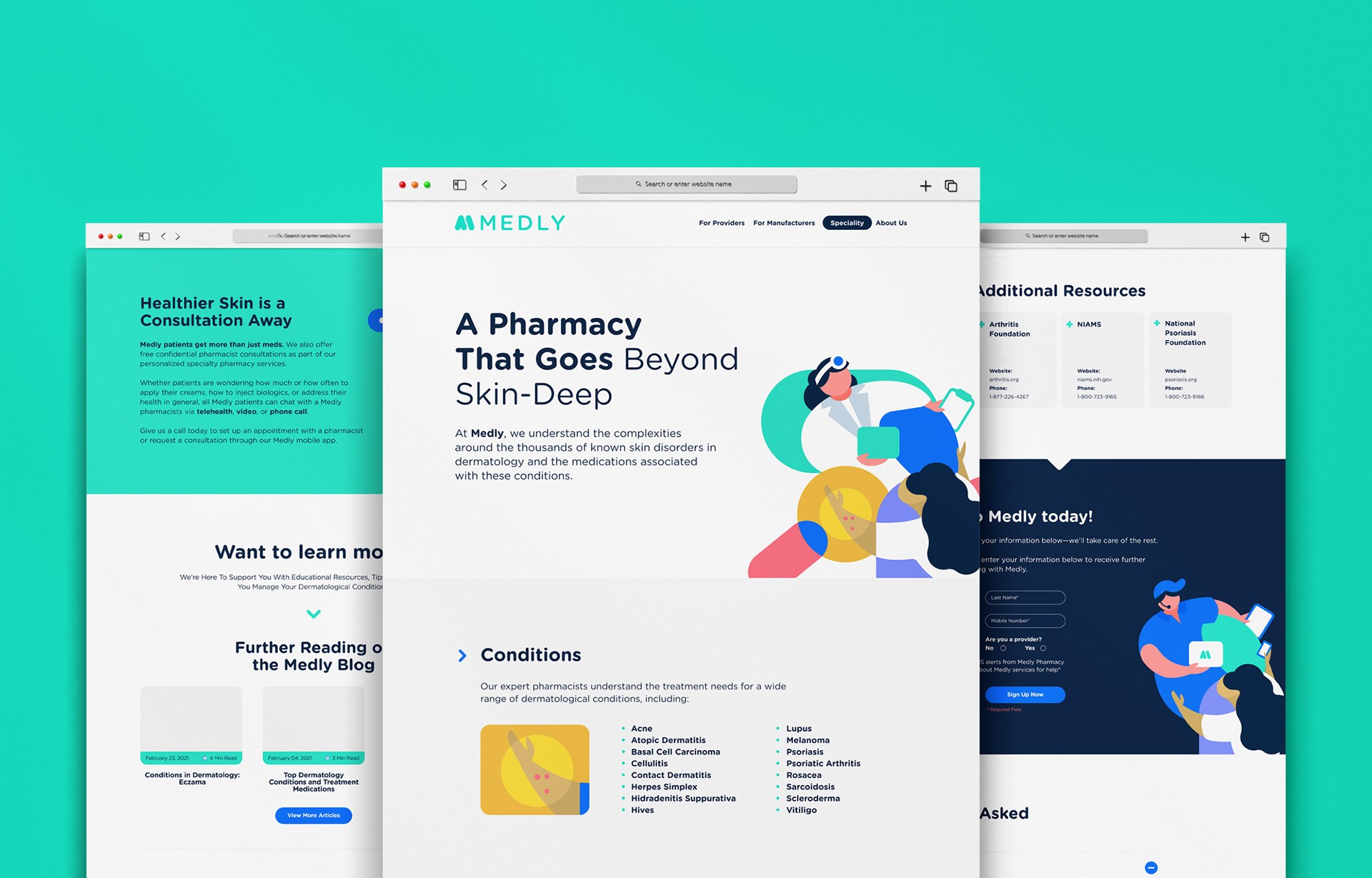 A refreshed homepage was developed with content to education and tools to simplify onboarding, funneling viewers into the webapp/native app where they establish a profile and transfer their prescriptions to Medly. From there users can manage refills, get notifications, talk to their providers, and switch/alter prescriptions. The corresponding provider portal gives medical professionals visibility into efficacy, and helps them better connect with patients.